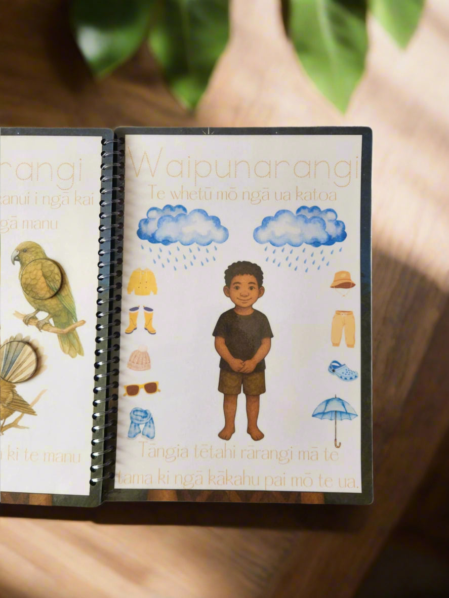 These Pukamahi are made by me at my kāinga. Each one is printed on sturdy paper, laminated for durability, and bound together. The corners are gently rounded to keep little hands safe.