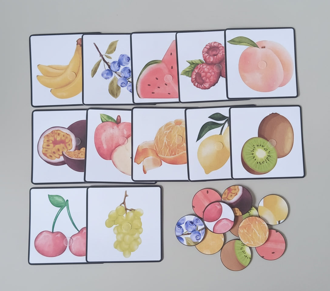 A fun and simple matching game to help tamariki learn about different huarākau while building memory and thinking skills. Each card shows a fruit illustration with a circle cut out for tamariki to match the correct piece to the picture.